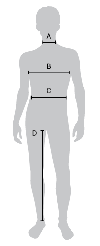 Use these measurements as a guide when selecting the right size garment, but also take into consideration the garment fit.
